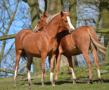 Yearling fillies Carrwood Moonsong and Carrwood Water Lily. Moonsong was 1st and Reserve Best Filly at Glanusk 2016. Water Lily was Champion and Reserve Supreme Tudor Rose WPCA Spring Show, winning her WPCS Medal. Lily is now the property of Bronheulog Stud.